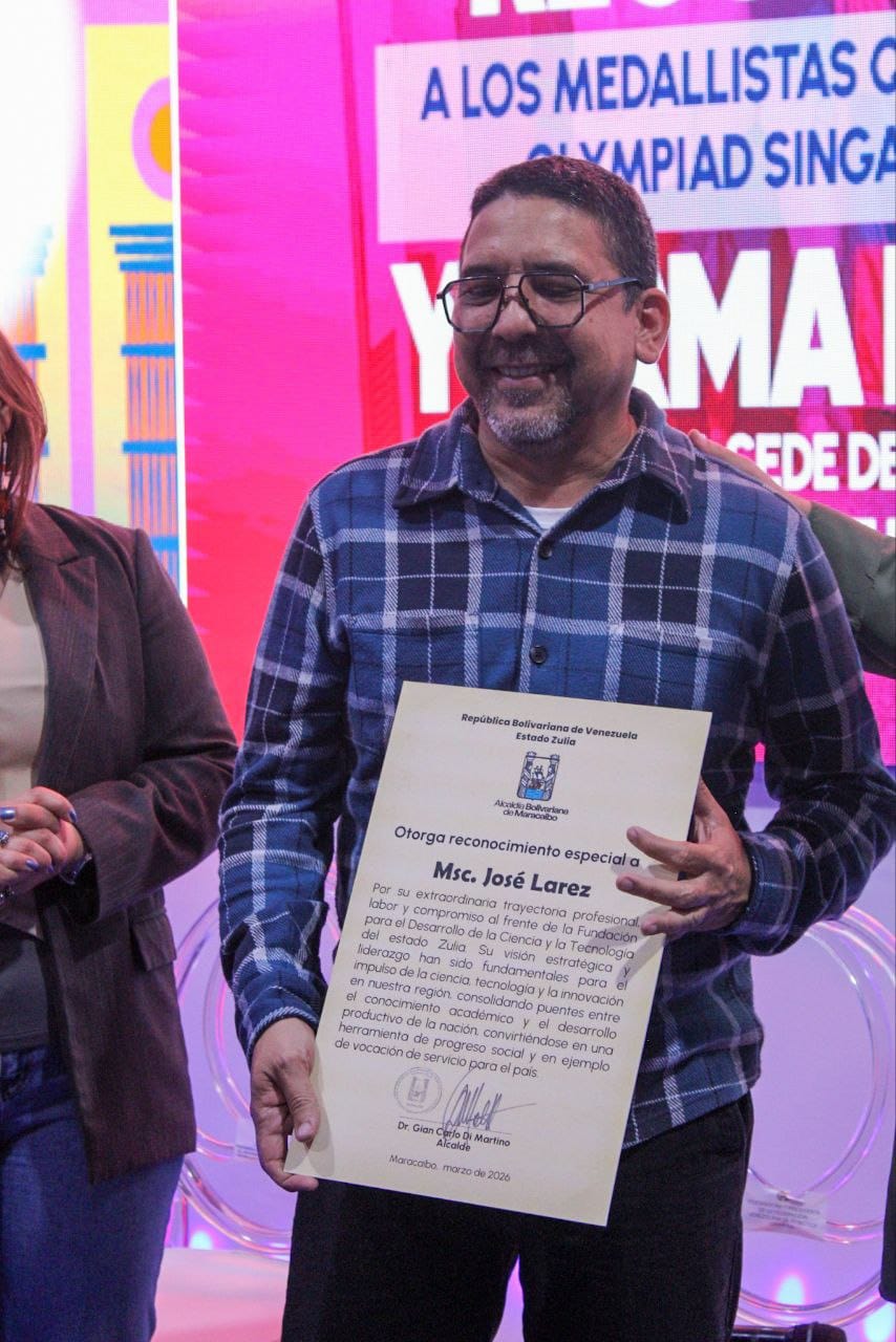 También fue homenajeado el MSc. José Larez, presidente de Fundacite, con el botón Honor al Mérito por su trayectoria y compromiso con el desarrollo científico y tecnológico en el estado Zulia.
