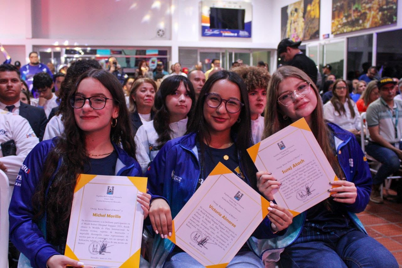 Con un caluroso reconocimiento, la Alcaldía Bolivariana de Maracaibo celebró la destacada participación de jóvenes talentos en las Olimpiadas Robóticas WRO 2025, en un acto dedicado a estudiantes del Colegio Salto Ángel, quienes obtuvieron la medalla de oro y plata en la World Robot Olympiad celebrada en Singapur.